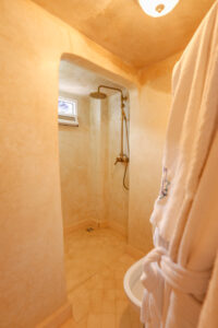 Au premier étage cette chambre très calme (de 10m2) décoré dans un style marocain se compose d’un lit 2 places (160×200) et d’une salle d’eau avec douche et toilette.